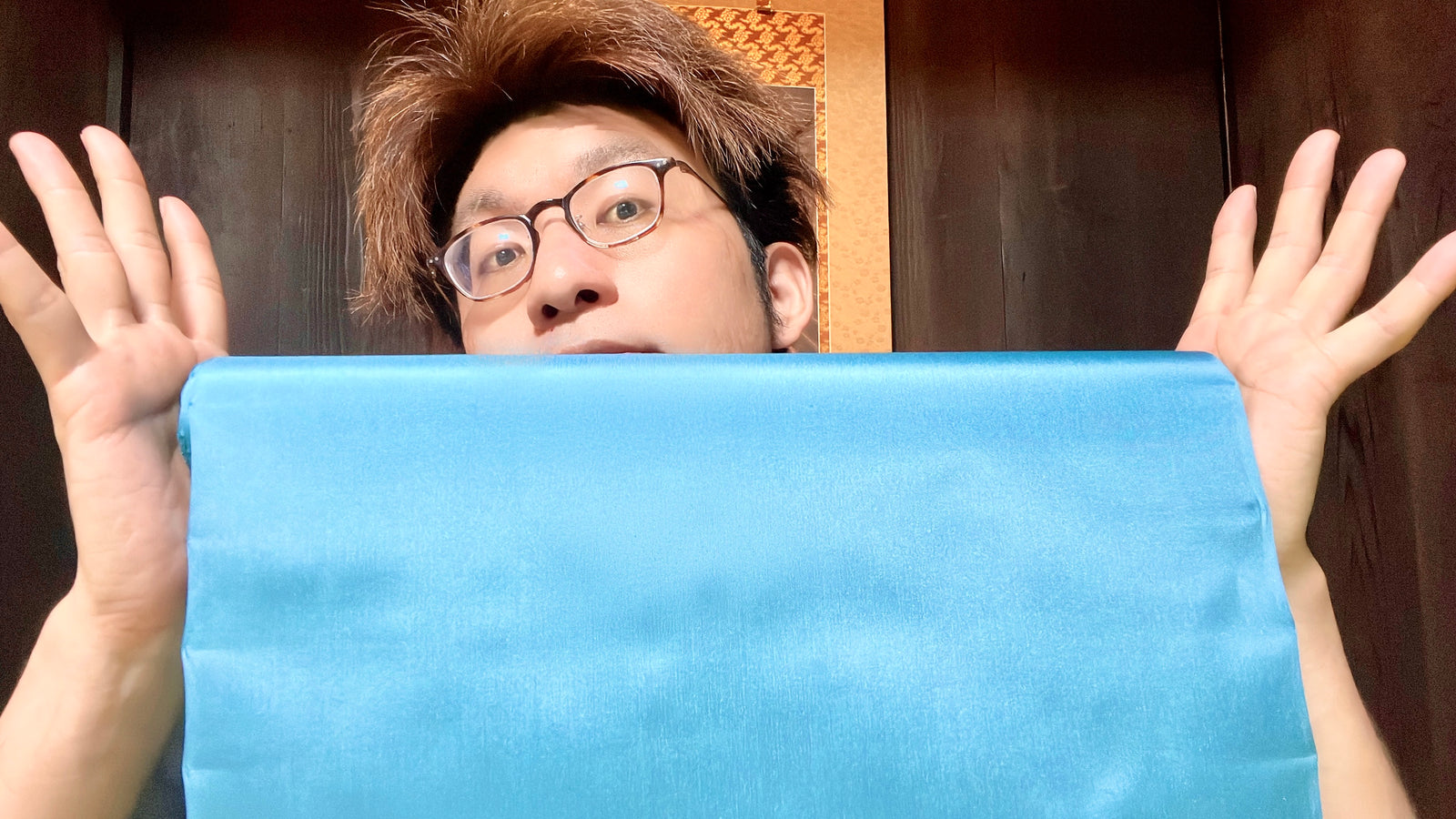 特別「ターコイズブルー」の色合いと、京都の友禅職人「蓮」柄の相性もバツグン。異世界とも思える両者が、頭のなかでバチっと掛け合わさりました。