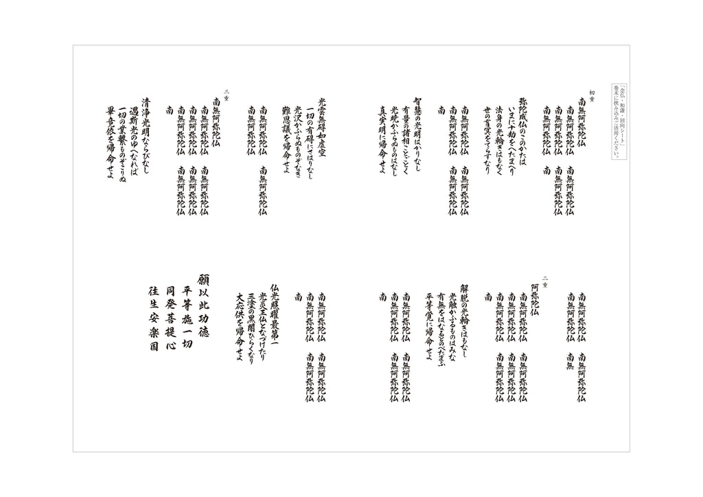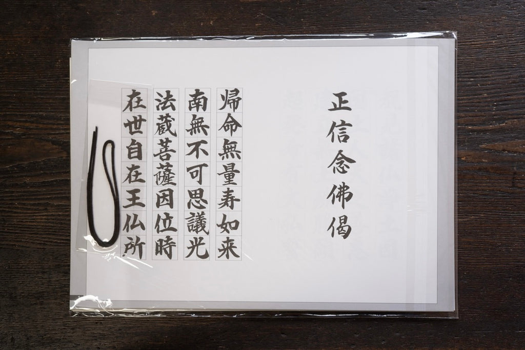 お手本シートをもとに、ご自身の手で正信偈の御文を半紙に書写していただく聖典です。 表紙をつけて紐でつづることにより、自分だけの勤行聖典としてご活用いただけます。 各種研修会や勉強会などにも最適。
