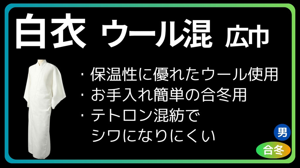 白衣 合冬 あたたか ウール混 広巾